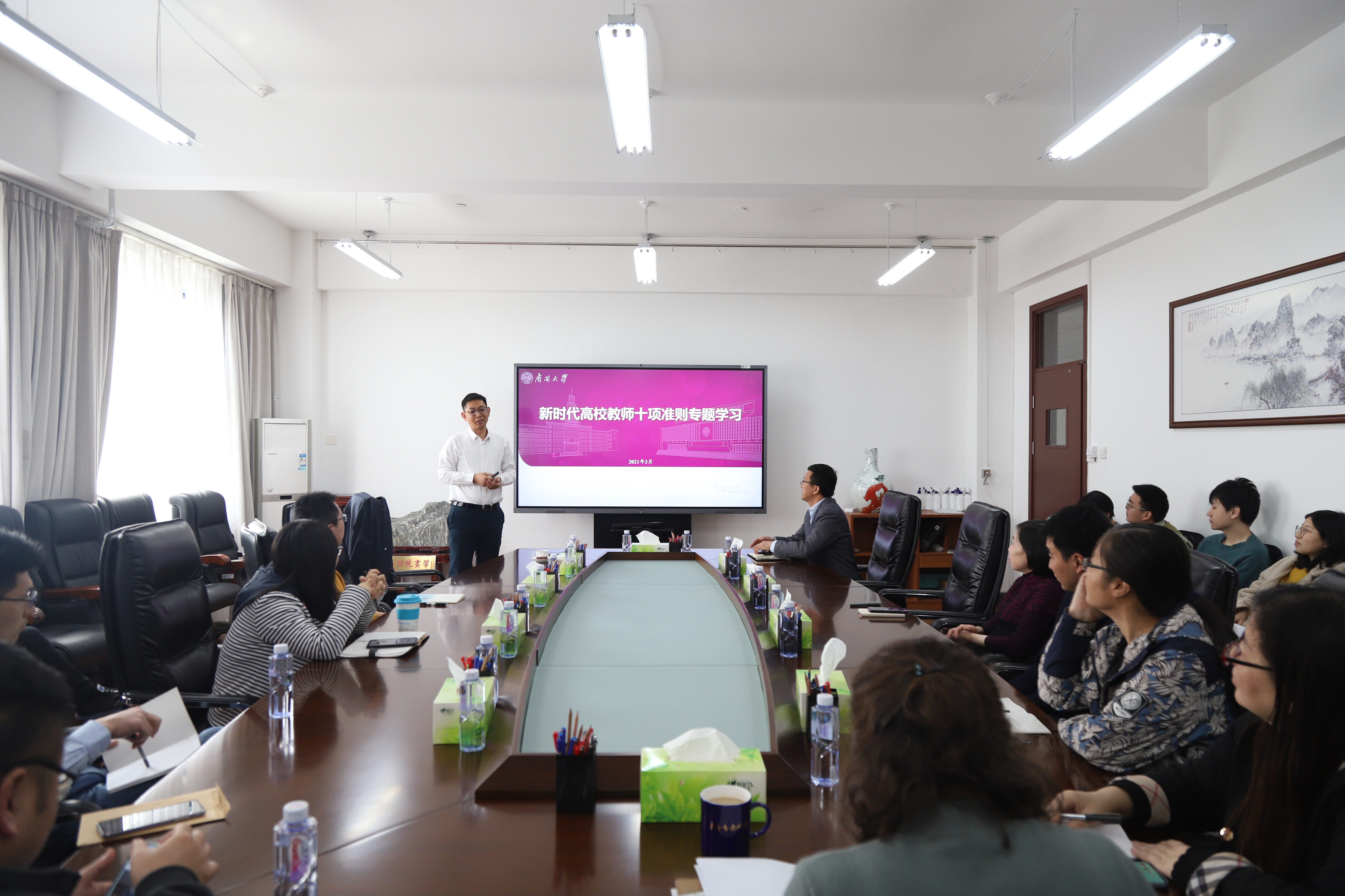 为深入学习贯彻落实习近平总书记关于教育的重要论述和全国教育大会精神,进一步加强和改进师德师风建设,3月25日,污漫 党总支邀请污漫 党委教师工作部副部长、教师发展中心副主任杜雨津为学院教师就新时代高校教师职业行为十项准则进行专题讲解,学院党总支副书记任子雄主持此次专题学习会。