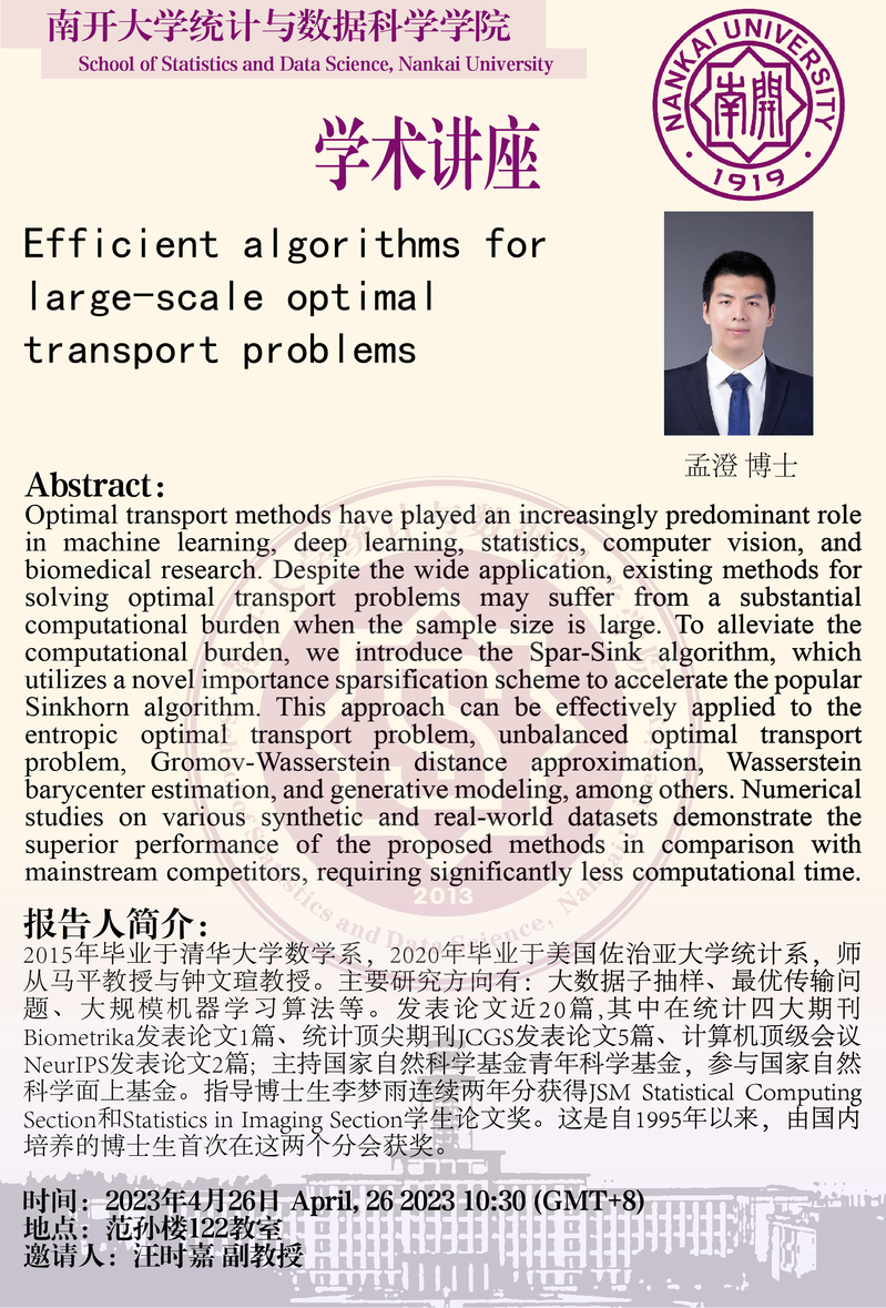 Efficient algorithms for large-scale optimal transport problems(孟澄)