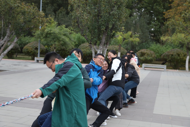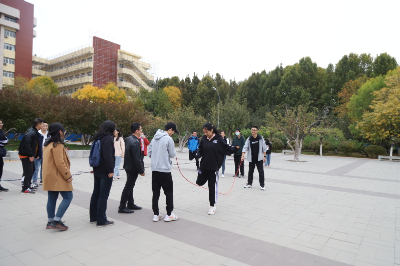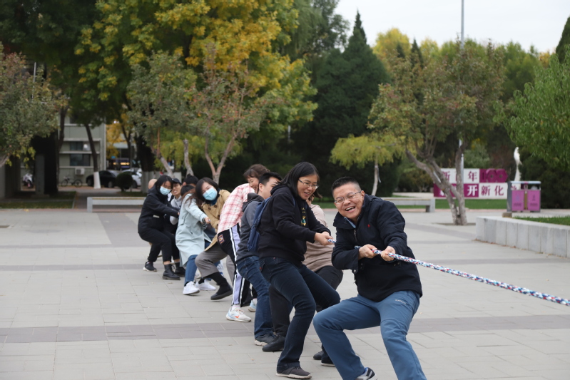 拔河、跳绳比赛参赛成员由自愿报名的教师和以班级为单位报名的学生组成,鼓励全员参与。跳长绳比赛中,只见长绳随着志愿者的胳膊画出优美的弧线,弧线中时而穿梭着跳进跳出的一张张面孔。他们不论高矮胖瘦,各个轻盈如燕,正在实力展现学习工作中静若处子,户外活动中动若脱兔的统院风采。千变万化,不拘一格,这才是青春的魅力,是活力的展现。