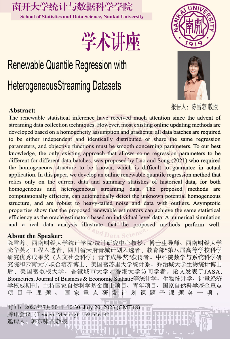 Renewable Quantile Regression with Heterogeneous(陈雪蓉)