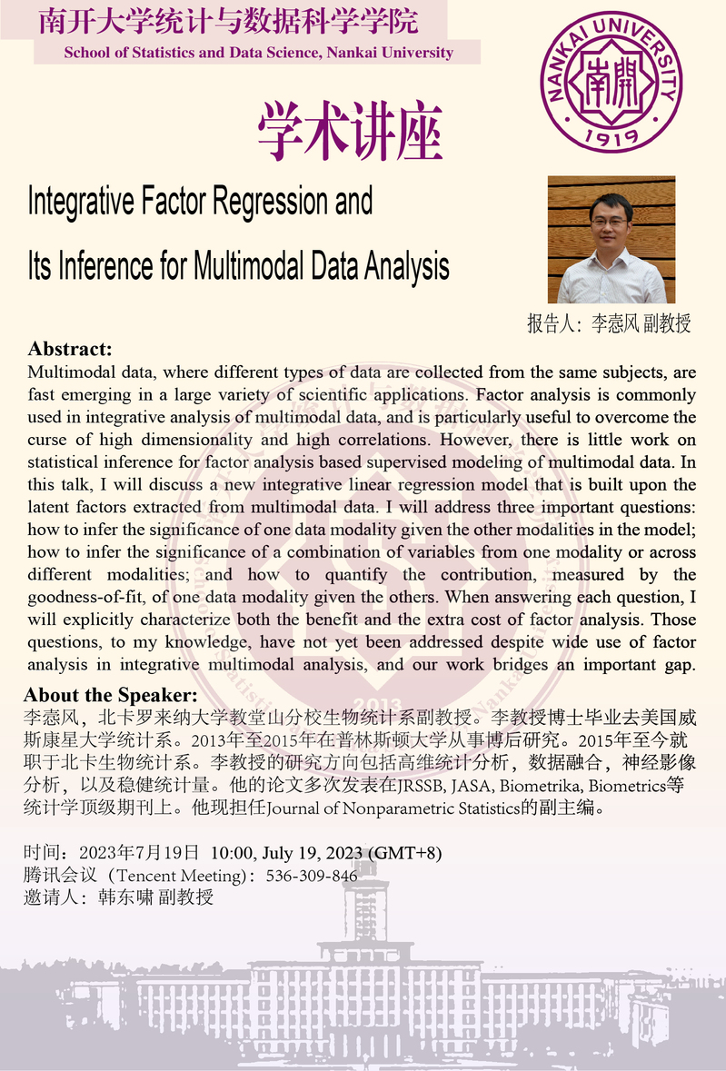Integrative Factor Regression and Its Inference for Multimodal Data Analysis(李悫风)