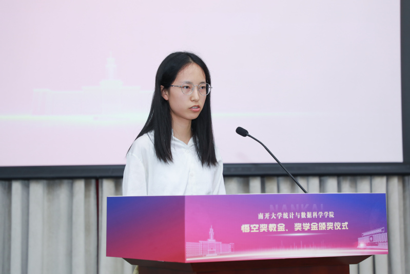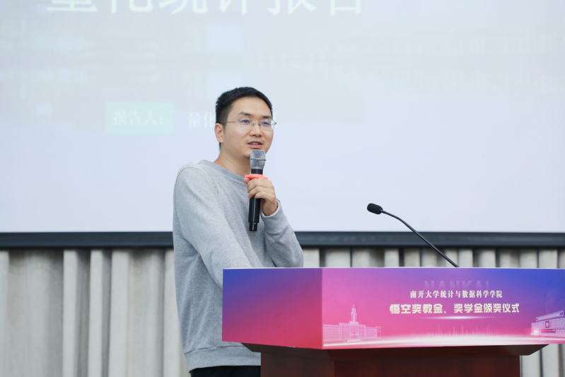 获奖教师代表王龙敏、学生代表张义美分别发表了获奖感言。他们表示,非常感谢悟空投资管理有限公司以及鲍际刚校友对污漫 统计学科的关注和实际帮助,不遗余力地在物质与精神方面为师生提供支持和关心。作为南开的一份子,他们将会以这份奖励为新的起点,立足本职工作与学习,在专业领域继续深耕发展,为祖国的建设和南开的发展做出更大的贡献。