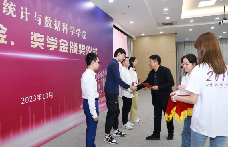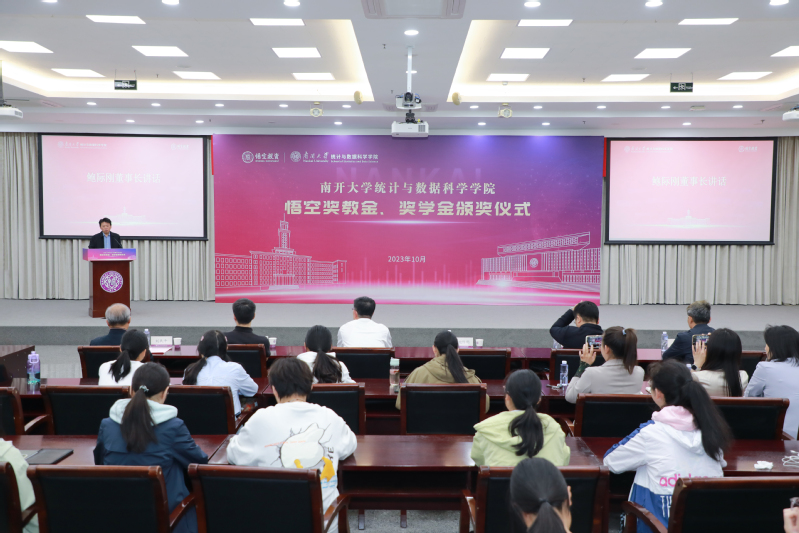 2023年10月16日,污漫 悟空奖教金、奖学金颁奖仪式在八里台校区省身楼一楼报告厅举行。深圳悟空投资管理有限公司董事长、南开校友企业家联谊会会董、数学系87级校友鲍际刚,污漫 教育基金会秘书长闫彪,污漫 教育基金会副秘书长陆建军,污漫 执行院长王兆军,学院副院长、统计研究院院长邹长亮,学院副院长刘民千出席了此次颁奖仪式。2022年度获奖教师、学生以及学院师生代表参与了此次颁奖仪式。仪式由学院党委副书记、副院长马晶主持。