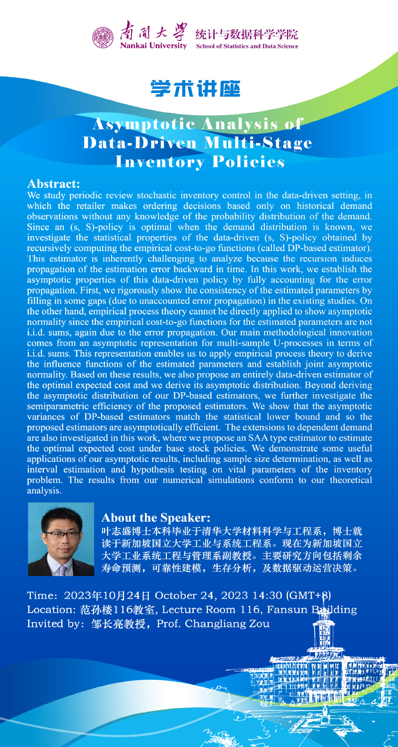Asymptotic Analysis of Data-Driven Multi-Stage Inventory Policies(叶志盛)