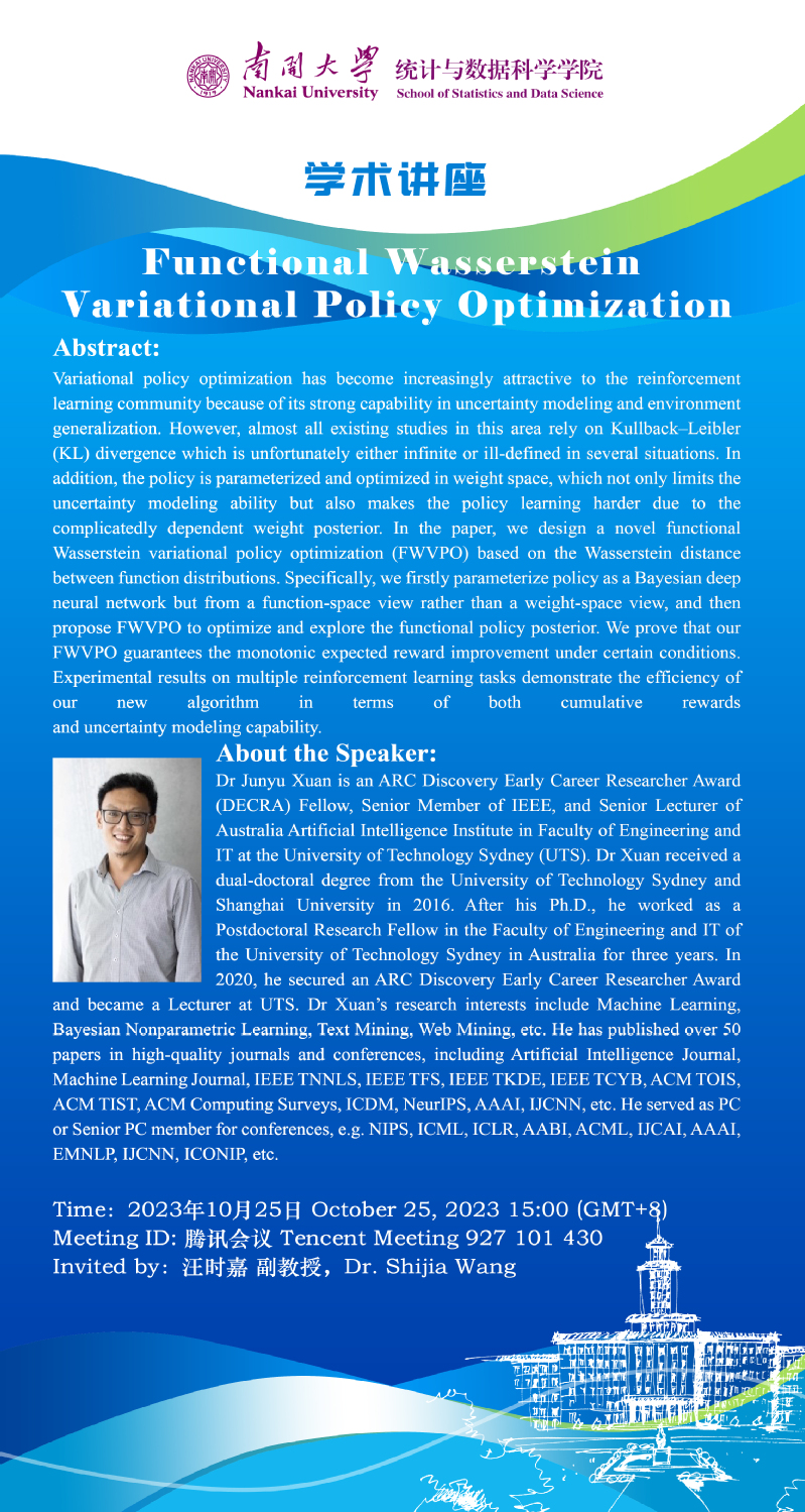 Functional Wasserstein Variational Policy Optimization(Junyuan Xu)
