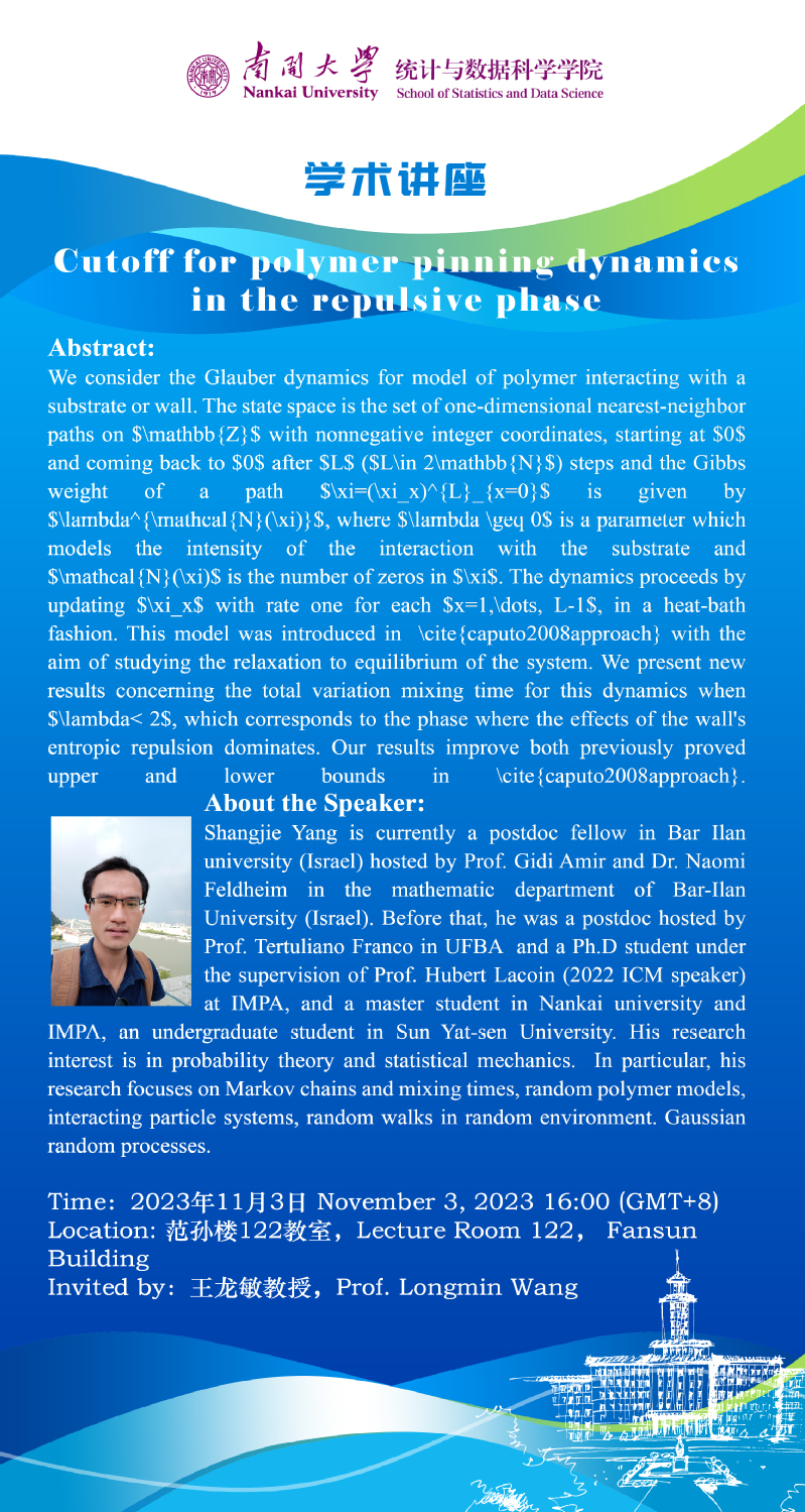 Cutoff for polymer pinning dynamics in the repulsive phase(杨尚杰)