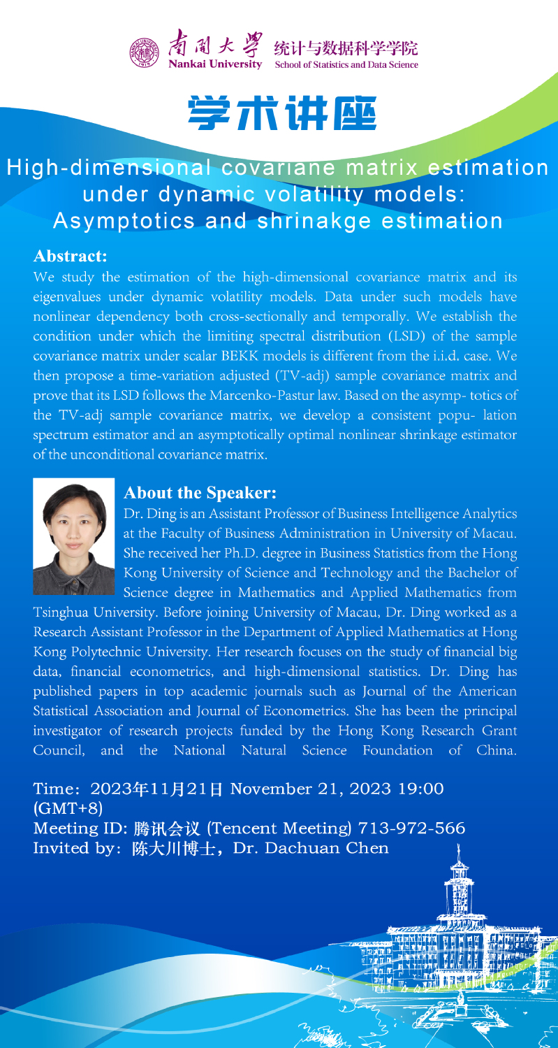 High-dimensional covariane matrix estimation under dynamic volatility models: Asymptotics and shrinakge estimation(丁一)