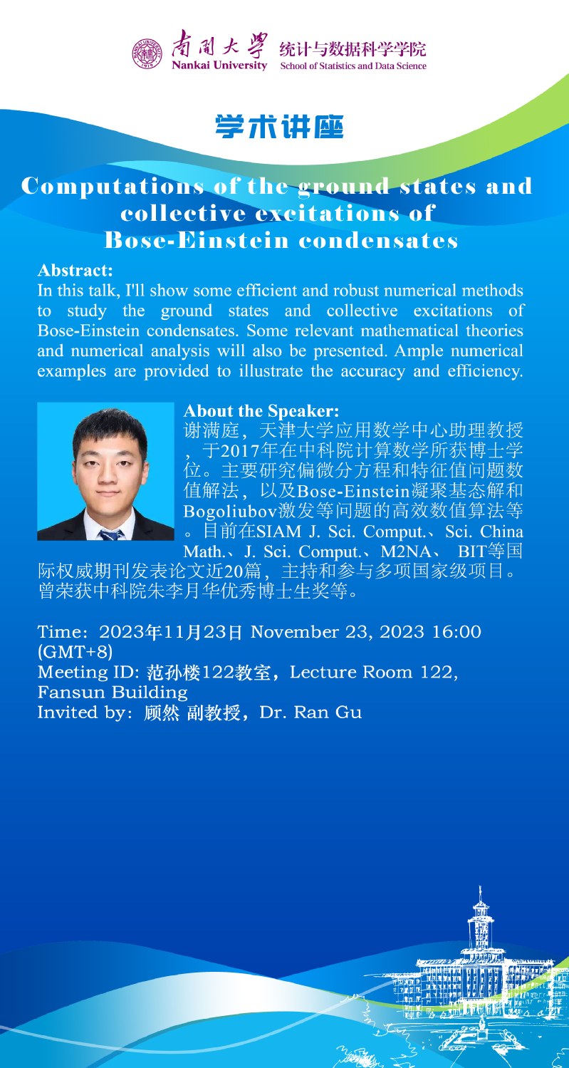 Computations of the ground states and collective excitations of Bose-Einstein condensates(谢满庭)