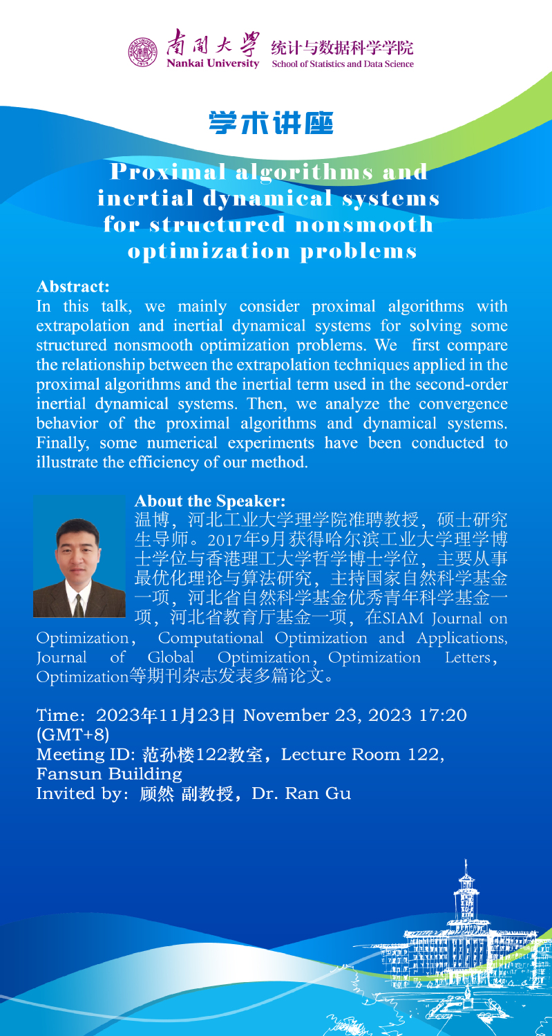 Proximal algorithms and inertial dynamical systems for structured nonsmooth optimization problems(温博)