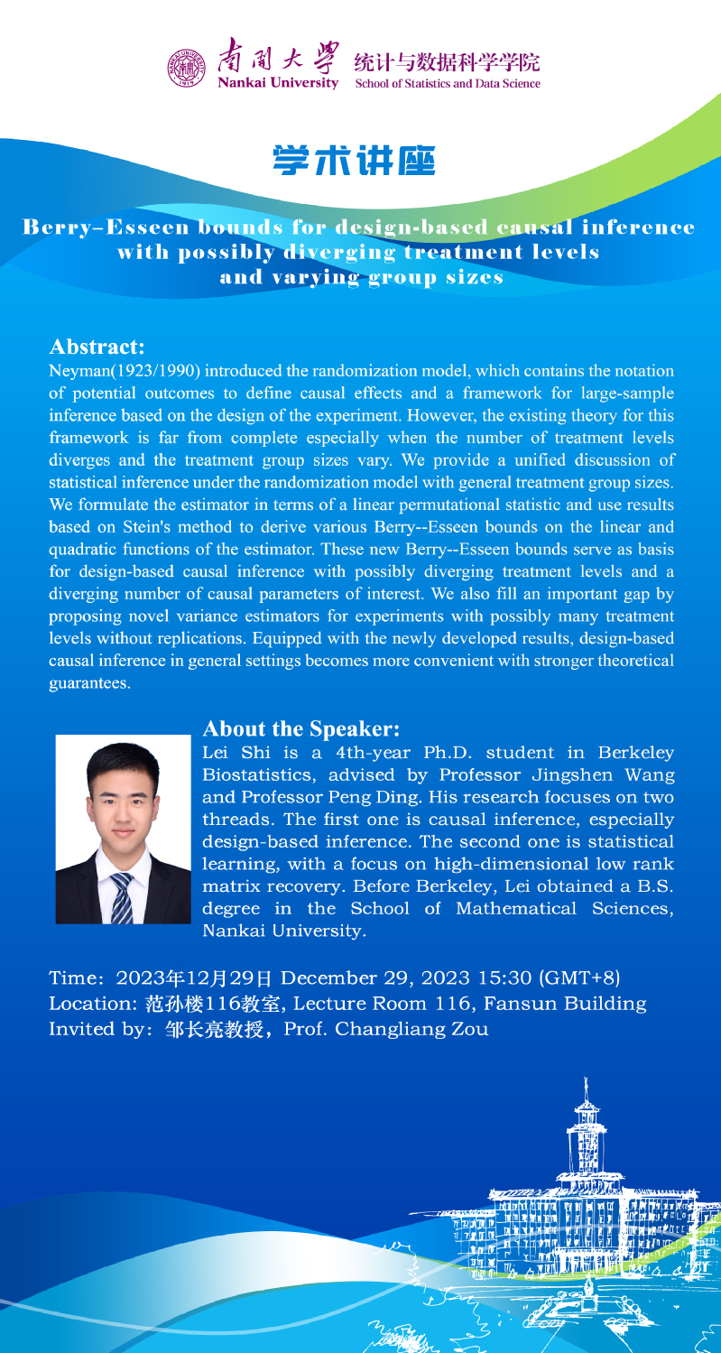 Berry–Esseen bounds for design-based causal inference with possibly diverging treatment levels and varying group sizes(石磊)
