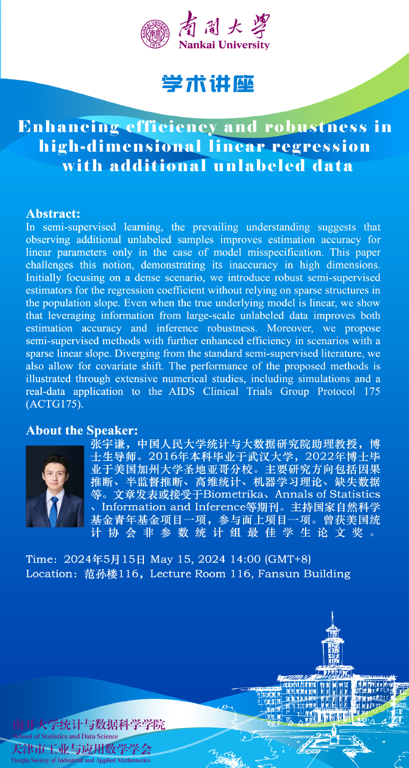 Enhancing efficiency and robustness in high-dimensional linear regression with additional unlabeled data(张宇谦)