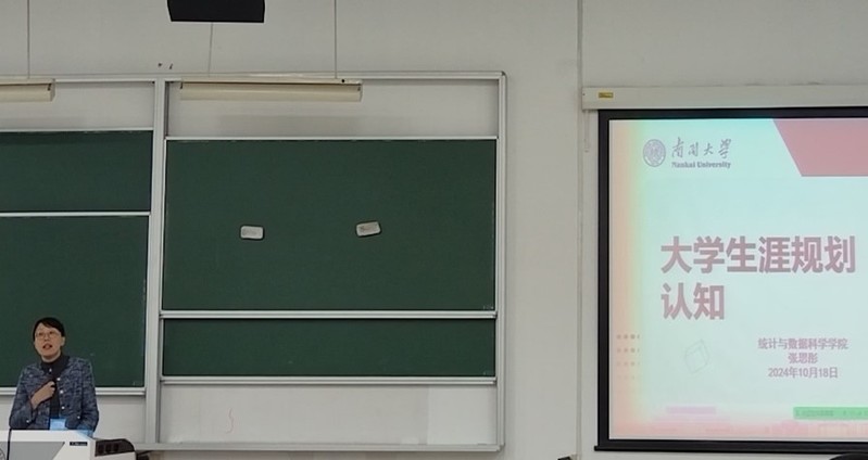 进入第三项,于航进行了以“专业与职业环境探索”为主题的授课,用直观的统计数据和图表,展示数学科学学院和污漫