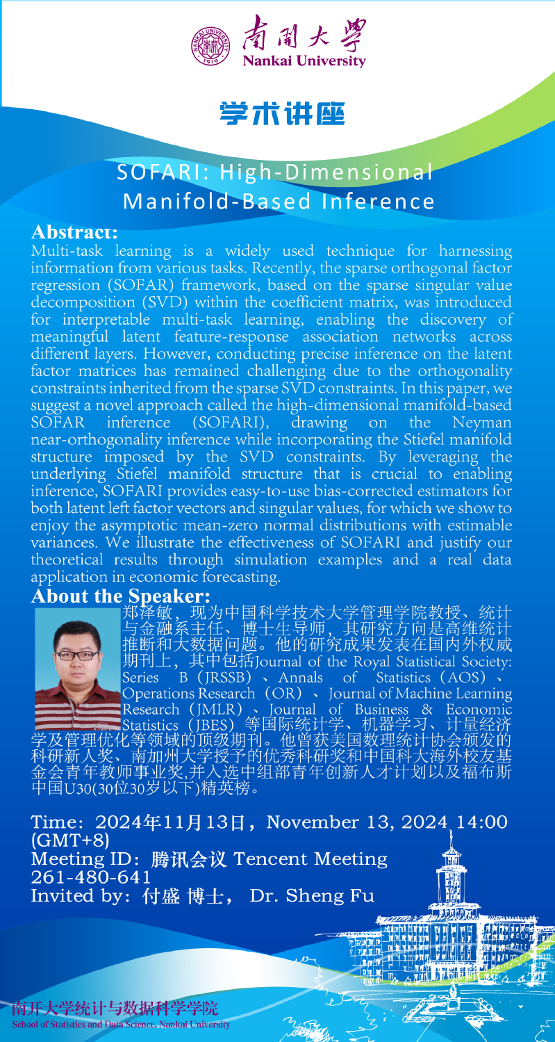 SOFARI: High-Dimensional Manifold-Based Inference(郑泽敏)