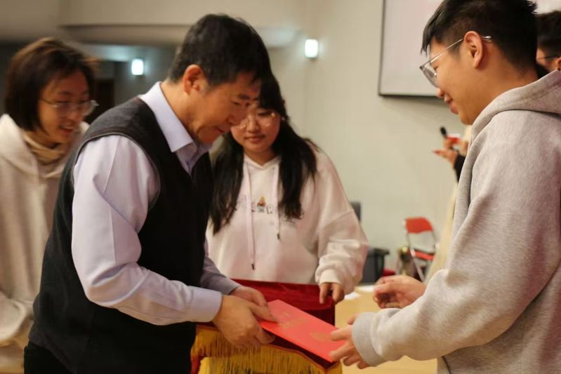 颁奖典礼上,王兆军、马晶、阿依古丽分别为学院在综合表现、学科竞赛、文体活动等方面取得优异成绩的学生颁奖。随后,王兆军代表学院致辞,细数了统院学子在2024年度取得的斐然成绩:学科类竞赛方面,学院共获得省市级三等奖以上荣誉多达159项,其中包括两支队伍获“高教杯”全国大学生数学建模大赛全国一等奖,4名同学获美国大学生数学建模竞赛F奖;文体赛事中,统院在“盛帆杯”校运动会中总成绩位居乙组第三,新生男子篮球队荣获“新生杯”八里台亚军,男子足球队更是历史性地夺得校长杯与足协杯双料冠军。王兆军引用陈省身先生所说的“立足南开、面向中国、放眼世界”,鼓励同学们奋勇争先,再创佳绩。