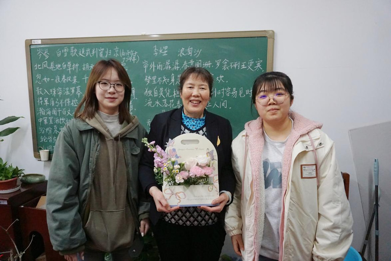 学生们还将自己插好的花束献给女教师,表达了对她们的敬意与祝福,为活动增添了温馨与感动。通过亲手制作花艺作品,同学们不仅提升了艺术修养与审美能力,也在互动中增进了彼此的情谊,进一步营造了学院和谐温馨的氛围。