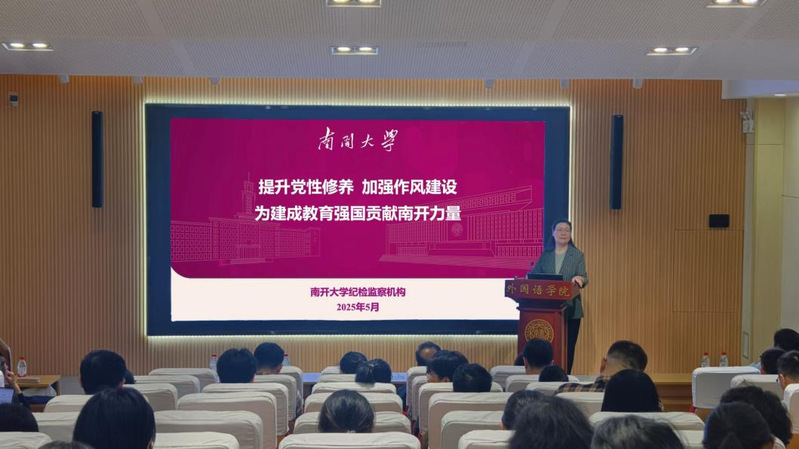 赵美蓉以“提升党性修养,加强作风建设,为建成教育强国贡献南开力量”为题作专题报告。报告从新时代新征程党的作风建设永远在路上、中央八项规定精神有关内容及典型案例、立足职责为建成教育强国贡献南开力量三个方面展开,全面解读了中央八项规定精神的核心要义和具体要求。结合典型案例,深入剖析了学习贯彻中央八项规定精神的重要性、必要性;明确了中央八项规定精神在高校的“落地清单”;进一步强调科研经费要“戴紧箍”,行政服务要“接地气”。赵美蓉强调,高校是教书育人的圣地,学术净土绝不能污染,师生信任绝不能透支,青年成长绝不能带偏。中央八项规定是长期有效的铁规矩、硬杠杆,每一名教师都要加强纪法知识学习,筑牢思想防线。