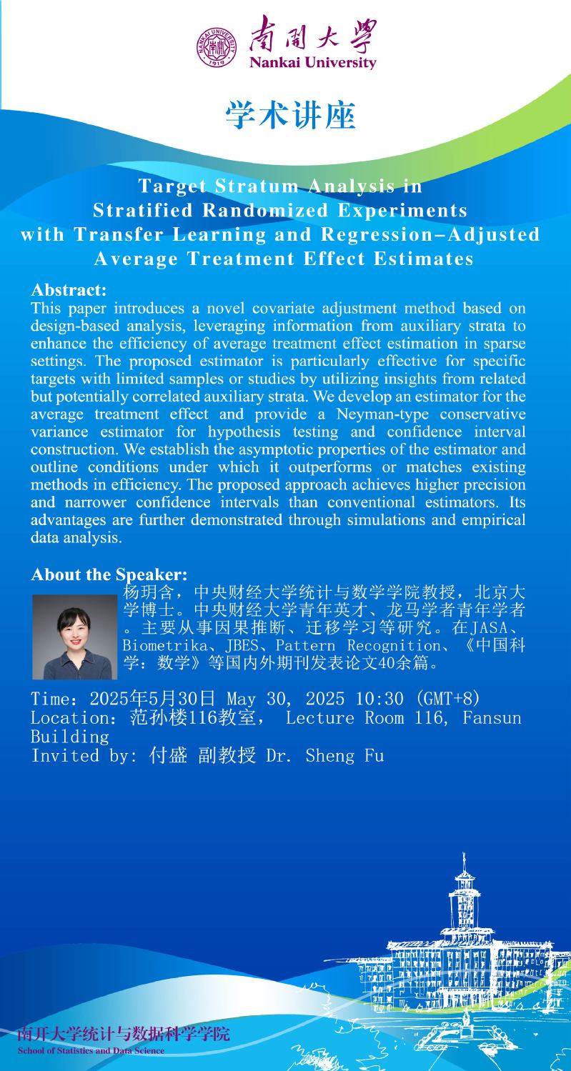 Target Stratum Analysis in Stratified Randomized Experiments with Transfer Learning and Regression-Adjusted Average Treatment Effect Estimates(杨玥含)