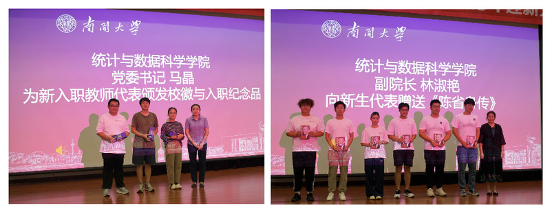 接着,马晶为新入职教师代表颁发南开校徽与入职纪念品,对他们的到来再次表示欢迎。
