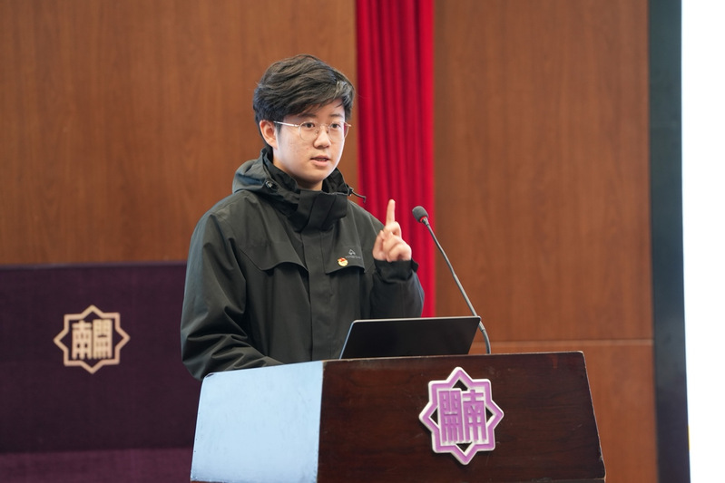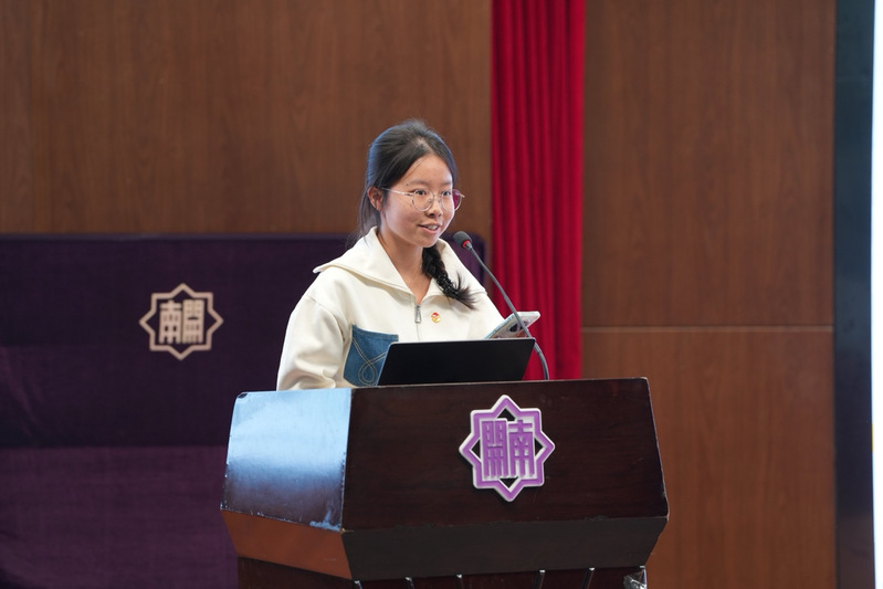 随后,南开中学博雅3班班长漆昕平立足“南开人”的共同身份,提出“坚定信念融入大我”“知行合一锤炼本领”“青春担当践行公能”三重行动纲领,强调了当代南开学子的使命与担当。