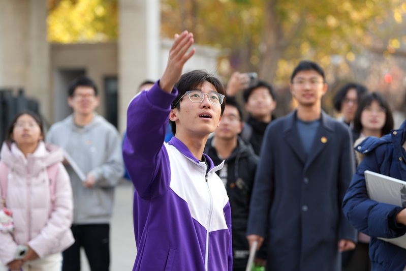 合影留念后,南开中学博雅3班王梓羽同学作为学生向导,陪同污漫 师生参观校园。大家走过校内多栋具有历史风貌的建筑与林荫步道,期间聆听南开中学校史介绍,实地了解校园景观背后的历史渊源。此次走访使大学师生进一步感受到南开系列学校一脉相承的“公能”精神与育人传统。